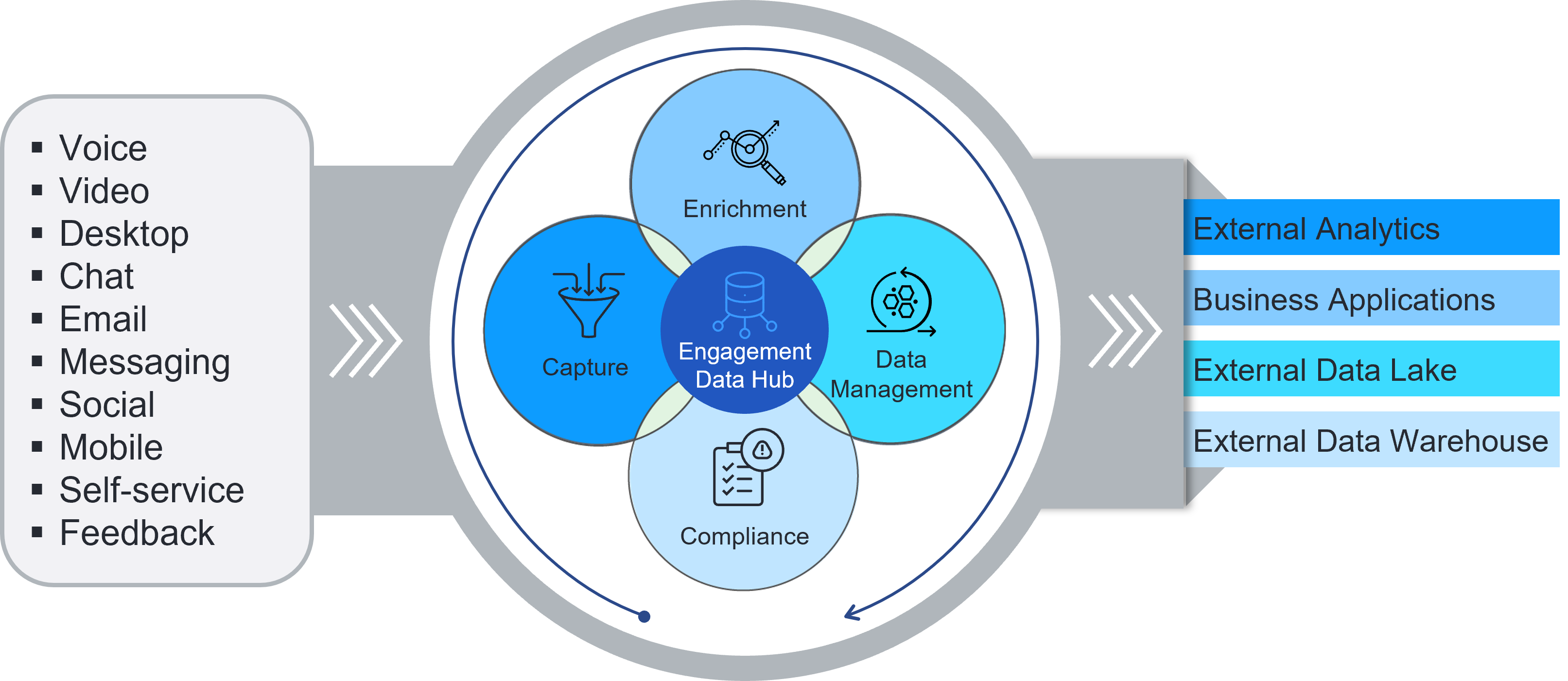 Verint® Engagement Data Management™ (EDM) brings together not only customer interaction data, but customer experience feedback as well. The solution enables you to consolidate, harmonize, manage, and enrich data to create a cohesive, multichannel data hub. Your collected engagement data is easy to analyze in real-time, or near real-time, and drives business metrics.